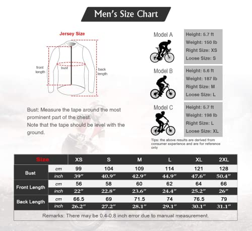 [MAGLIA DA CICLISMO PROFESSIONALE] Taglia più a lungo dietro per una piacevole sensazione avvolgente durante la guida. Ci sono strisce riflettenti sul retro per garantire la tua sicurezza durante la guida in condizioni di scarsa illuminazione. La t-shirt da ciclismo è molto leggera e pesa solo circa 250 g.