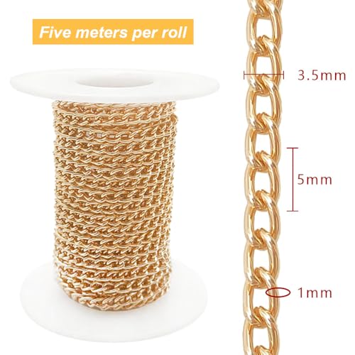 Catena da 10 metri, catena di gioielli, catena di gioielli, catena d'oro e catena d'argento, per collane fai da te, (oro + argento, 5 * 3,5 mm)