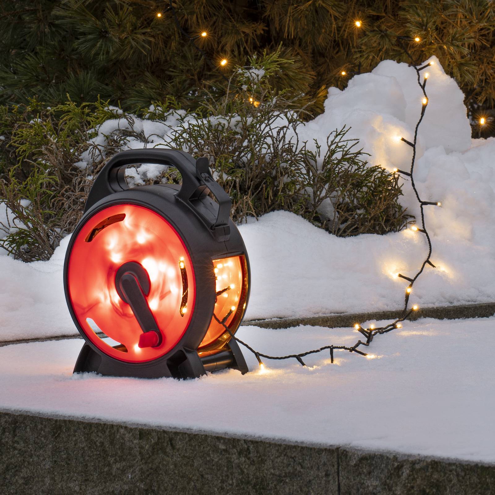 La catena luminosa a LED Micro è progettata per una decorazione esterna d'atmosfera ed è dotata di un pratico avvolgicavo. Trasformatore esterno incluso. - Micro LED - cavo morbido nero