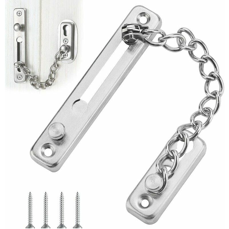 【Materiale in acciaio e lavorazione del filo metallico】: la serratura della porta a catena antifurto è realizzata in acciaio inossidabile, che è resistente e durevole e non facile da rompere. leggero e repellente allo sporco. Corrosione. Può garantire la tua sicurezza. e hanno una lunga durata. Il trattamento di trafilatura a tre strati sulla superficie resiste ai graffi quotidiani e previene urti e calci. � 【Blocco porta 【Sicurezza】: all'interno è presente un pulsante con un pulsante antifurto. Molla. La catena può essere aperta premendo la fibbia, impedendo efficacemente agli estranei di raggiungere il gancio interno e cadere dalla catena. Questo design fa cadere la catena e protegge la casa più saldamente, rendendola più sicura. 【Design della catena ispessita】: la catena spessa 3 mm è resistente, non facile da rompere. non si rompono e si rompono facilmente se tirati con forza. Può essere utilizzato a lungo. Rispetto alle catene tradizionali, le nostre catene possono fornirti una