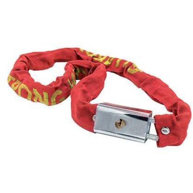 In acciaio cementato rivestito in nylon, chiusura con lucchetto corazzato doppio perno, colori assortiti, ideale per biciclette e motocicli.