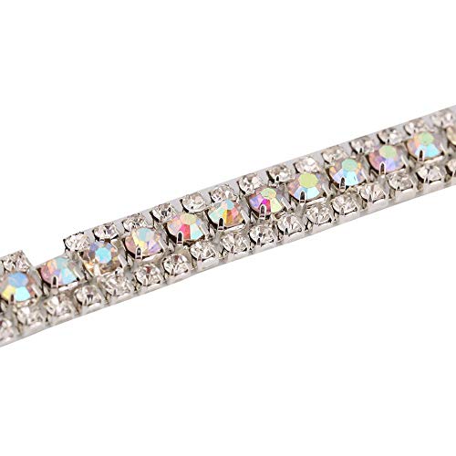 Catena Strass Cucito, 3 Fili Catena Strass fai da te Artigianale Strass Artigianato da Cucire a Catena, Cristallo Strass Catena Stretta (Silver)