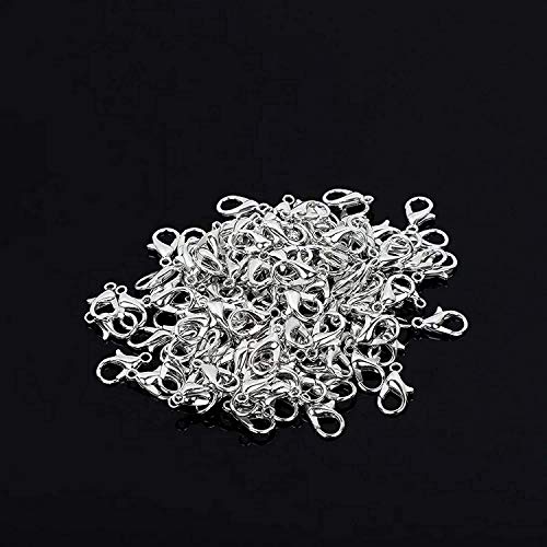 Catenacci per Aragosta,Chiusure Bigiotteria 100 Pezzi Chiusure Moschettoni per Gioielli Artigianali Fai-da-Te Che Braccialetto Collana (Argento 12 mm