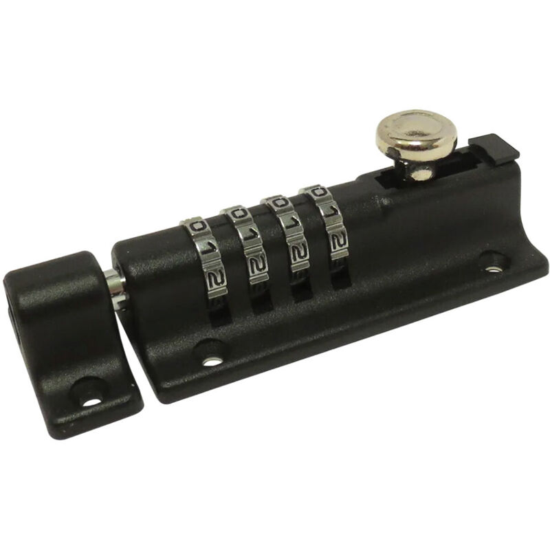 1,0 PZ Di CATENACCIO ORIZZONTALE IBFM 56 A COMBINAZIONE catenaccio tondo orizzontale con graffa e con viti di fissaggio a vista. Sistema di chiusura a combinazione digitale. Adatto per essere avvitato su superfici in legno, alluminio o metallo.