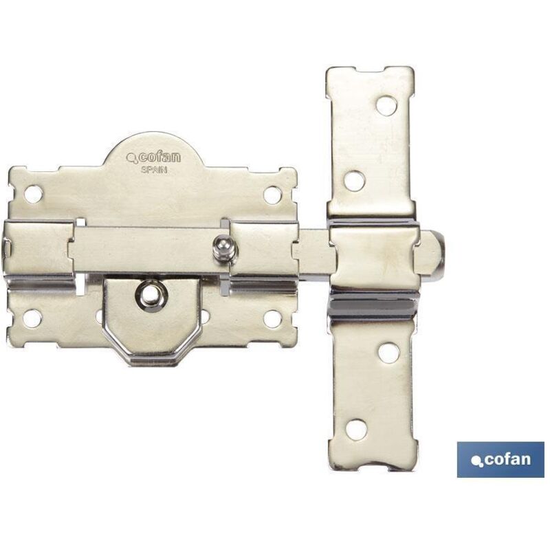 Scrocco con finitura nichelata, barra in acciaio calibrato da 18 mm, piastra in acciaio da 2 mm, contropiastra in acciaio da 3 mm. Cilindro tondo in ottone da 50 e 70 mm. Caratteristiche tecniche: Misura: 50 mm