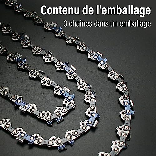 【Materiali Di Alta Qualità】: Grazie alla nostra tecnologia di produzione avanzata, le catene in acciaio temprato ad alta temperatura durano più a lungo,resiste all'usura, migliora la resistenza, riduce le variazioni di tensione della catena e aiuta a svolgere il lavoro di taglio in modo rapido ed efficiente.