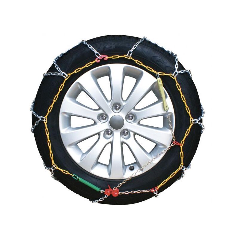 Robuste catene da neve a rombo con maglie da 12 mm, specifiche per SUV e monovolume. Montaggio facilitato all'esterno senza spostare o sollevare il veicolo. Provviste di molla antistrappo e cricchetto auto-bloccante aperto frontalmente. In pratica borsa salvaspazio/salvabaule. Conformi alla normativa ONORM V5117. Adatte per le seguenti misure di pneumatico: 15'' (265/70-15, 750-15, 9-15), 16'' (235/75-16, 235/80-16, 245/70-16, 245/75-16, 255/65-16, 700-16), 17'' (225/70-17, 225/75-17, 235/65-17, 25 5/60-17), 17,5'' (205/75-17,5, 215/75-17,5, 8-17,5), 18'' (225/65-18, 235/60-18), 19'' (235/55-19, 245/50-19, 255/45-19), 20'' (245/45-20). CATENE NEVE SUV GRIP mm12 GR. 220