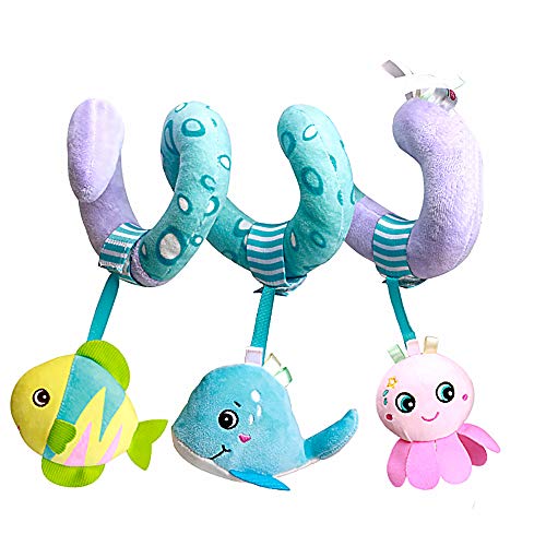 Caterbee Giocattoli per seggiolino auto, giocattolo a spirale per passeggino con sonaglio per ragazzo o ragazza (oceano)
