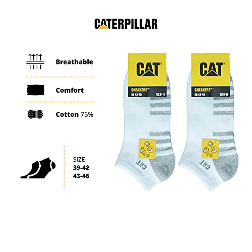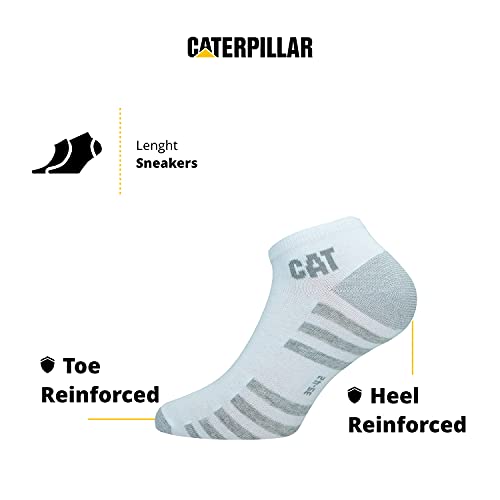 Caterpillar 6 Paia Calzini Sneaker Lunghezza Caviglia - per Qualsiasi Uso - Punta e Talloni Rinforzati - in Cotone (Bianco, 43-46)
