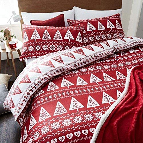 Catherine Lansfield Set copripiumino, motivo: alberi stile nordico, colore rosso, letto matrimoniale