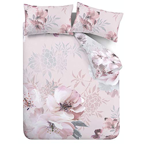 Catherine Lansfield Set copripiumino, 3 pezzi, matrimoniale con motivo floreale, facile da pulire, colore: Blush