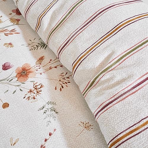Catherine Lansfield Set copripiumino reversibile per letto king size, in cotone spazzolato, con motivo floreale, colore naturale