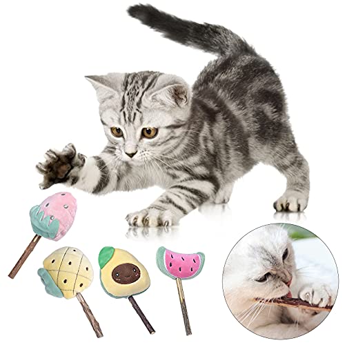 Catnip Giocattoli per Gatti 4pcs Gatti Giocattoli Interattivi Bastoncini di Erba Gatta per Matatabi Giocattolo da Masticare per Gatti Giocattolo della Peluche di Menta del Gatto Includi Campane