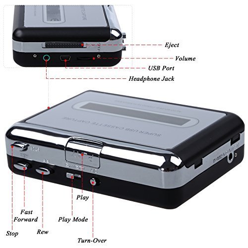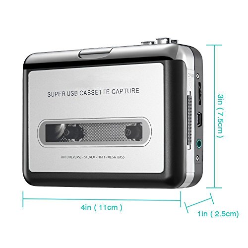Con il convertitore MP3 possono convertire le cassette con PC in MP3. Facile connessione USB Plug & Play, nessun driver richiesto: il digitalizzatore di cassette collegare con il computer tramite USB, software da installare e potete utilizzarlo immediatamente. So si può riprodurre i dati sul tuo smartphone ricarica, su CD bruciore o semplicemente sul tuo PC.