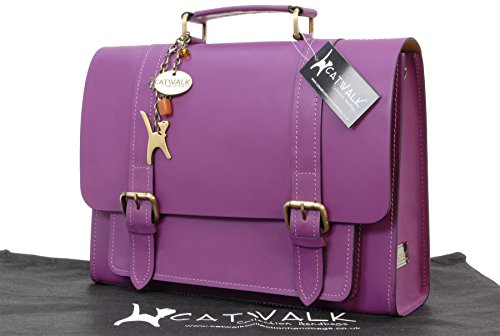 Catwalk Collection Handbags - Vera Pelle - Borsa a Tracolla da Lavoro/Satchel/Borse a Mano/Messenger/Borsa Business - Tracolla Regolabile e Rimovibile - Canterbury - VIOLA