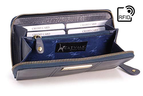 Catwalk Collection Handbags - Vera Pelle - Borsellino/Portafoglio/Portamonete da Donna - RFID Protezione - Scatola Regalo - Gallery Purse