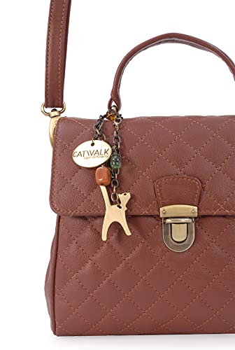 Catwalk Collection Handbags - Vera Pelle Imbottita - Borsa a Tracolla/Borse a Mano/Spalla/Con una Cinghia Regolabile e Rimovibile - Con Ciondolo a Forma di Gatto - Hayley - MARRONE CHIARO