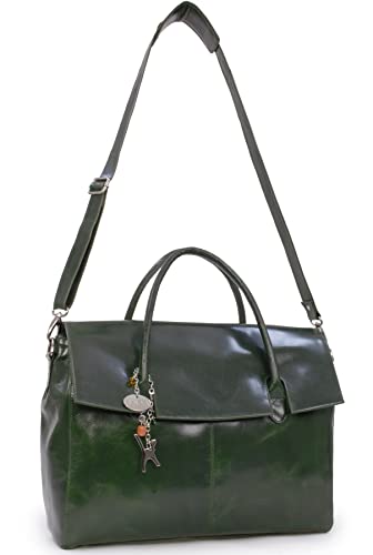 CATWALK COLLECTION - Vera Pelle - Grande Borsa a Tracolla da Lavoro/Borse a Mano/Spalla/Messenger/Tracolla Regolabile e Rimovibile - Per PC Laptop Portatile/Tablet - Helena - VERDE