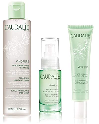 Caudalie set vinopure pelle pulita la nuova routine anti imperfezioni lozione 200 ml + siero 30 ml + fluido 40 ml