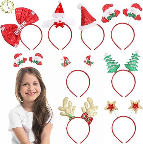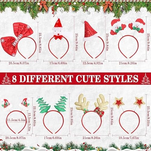 CAUTIOUS 8 Pezzi Fascia Natalizia Accessori per Capelli di Natale, Set Fascia per Capelli in Costume di Natale Accessori per Capelli per Natale Bambini Cerchietto per Capelli Paillettes, 8 Stili