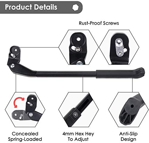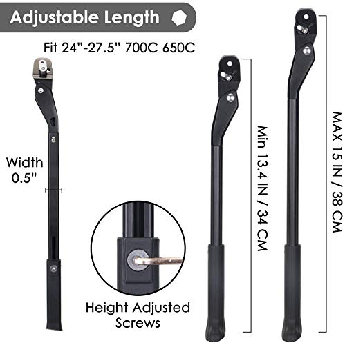 Altamente compatibile - Il supporto per bici è compatibile con la maggior parte delle biciclette, adatto per biciclette con un diametro della ruota 24 - 27,5 pollici. Regolando la lunghezza cavalletto con una chiave esagonale da 3 mm (non inclusa), è possibile regolare rapidamente la lunghezza del supporto del piede. La lunghezza può essere regolata tra 14 "-15" (34-38 cm). Il supporto per bici funziona su telai verticali ovali, ad esempio mountain bike, auto da corsa e bici pieghevoli.