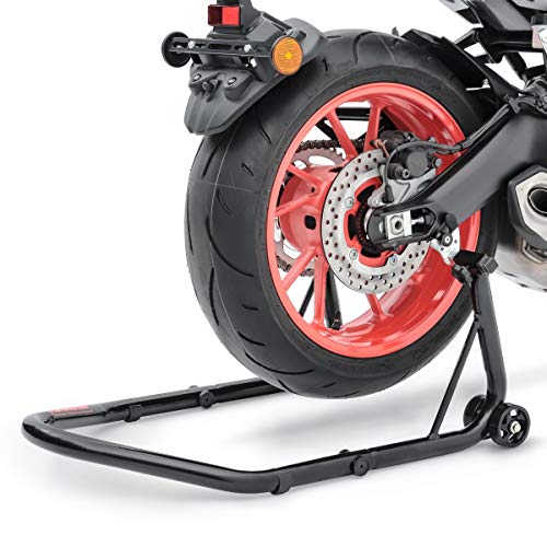 Constands BCS set composto da un cavalletto alzamoto per la ruota anteriore e posteriore. Sollevamento facile e sicuro dell'intera motocicletta sia nella parte posteriore che nella parte anteriore per eseguire lavori di riparazione e assistenza