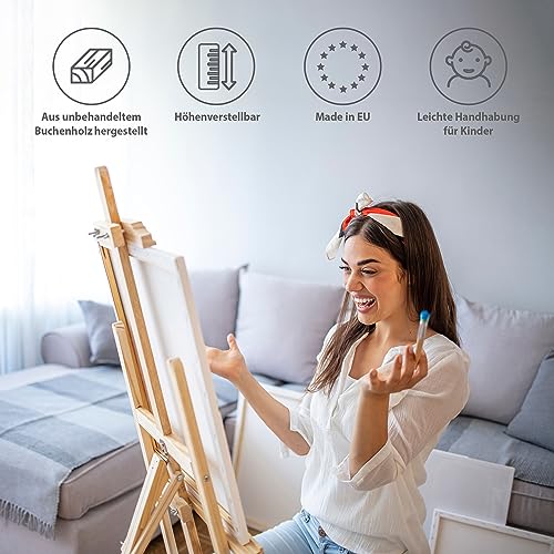 Funzionamento facile per i bambini - Il cavalletto in legno regolabile in altezza e inclinabile offre non solo agli adulti ma anche ai bambini la comodità di dipingere. Maneggevolezza, massimo comfort!