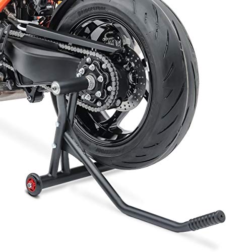 Constands set di cavalletto posteriore e anteriore per moto con monobraccio. Con adattatore in alluminio (bullone con cuscinetto a sfera) per i modelli elencati