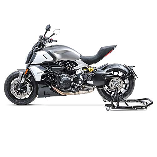 La combinazione perfetta di un cavalletto moto posteriore e un carrello moto per i modelli con forcellone monobraccio Ideale per lo stoccaggio a lungo termine e per l'ibernazione