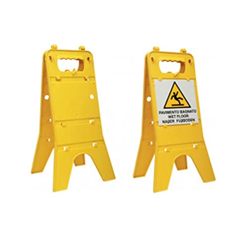 Cavalletto richiudibile Portacartelli ATTENZIONE PAVIMENTO BAGNATO e FUORI SERVIZIO in pvc giallo per segnali 200x200 200x300mm
