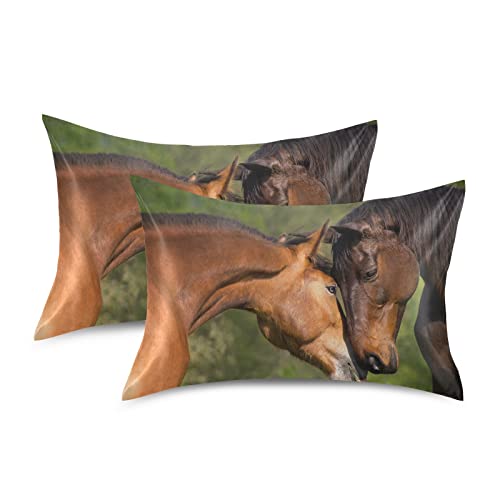 Cavallo Coppia Animale Selvatico Federe Cuscino Letto, Federa Guanciale Pillowcase in Seta Morbida per Capelli e Pelle con Chiusura a Busta standard/regina/re