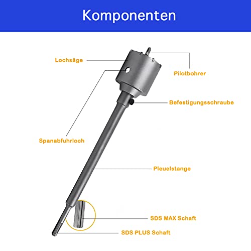 Versatile: il kit è perfetto per lavorare su mattoni, cemento, pietra, piastrelle, mattoni misti, pareti in schiuma. È adatto per tutti i martelli perforatori con attacco SDSPLUS o SDS MAX, come Bosch, Makita, Hilti, Einhell, Kress, Millwaukee e Dewalt e molti altri.