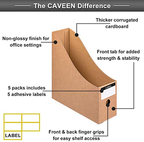 CAVEEN Portariviste 5 Pezzi, Portariviste Ufficio Cartone con Foglietti Adesivi, Portariviste Organizer per Scuola Ufficio Alloggio, Portariviste Documenti Facile da Montare e Conservare (Castano)
