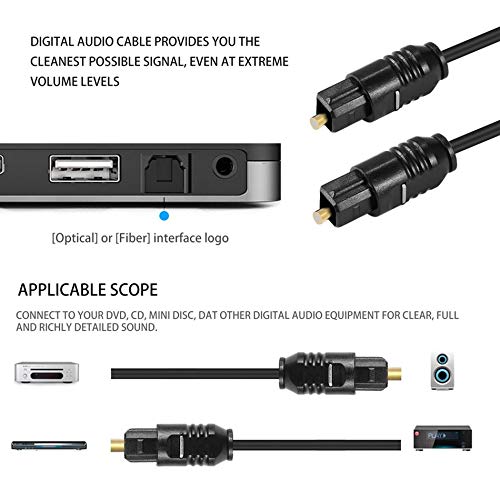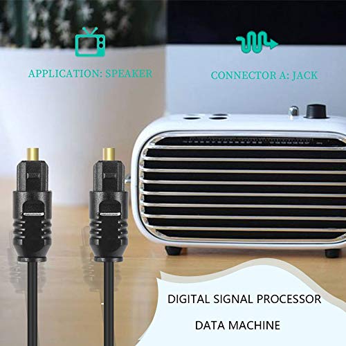 Cavo ottico audio in fibra ottica per l'uso Ricevitore digitale Dolby, Processore di segnale digitale, Macchine DAT, Lettore Divx, Lettore DVD, Lettore CD, Ricevitore DSS, Videoregistratore DAT, Videoregistratore MINI Disc, PS2, PS3, XBox, ALESIS o qualsiasi altro componente che utilizza normali connettori full-size.