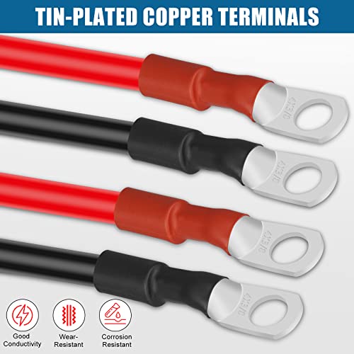 BUONA CONDUTTIVITÀ ELETTRICA: il cavo dell'inverter della batteria dell'auto è realizzato con fili di rame puro con terminali in rame nichelato che possono offrire il massimo trasferimento di potenza e protezione dalla corrosione.