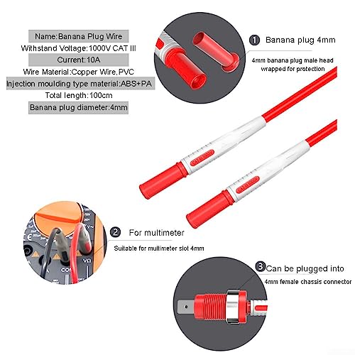 Qualità eccellente: kit di cavi per test multimetro con spina a banana sono tutti realizzati in puro rame di alta qualità, forte conduttività, bassa resistenza e nessuna perdita di segnale. Leads: CAT III 1000V, 10A.