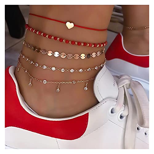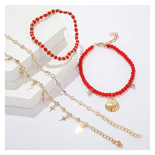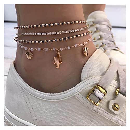 Cavigliera Anklets Multistrato Etnico Boho for Le Donne Branelli affascinanti Braccialetto for Caviglia con Guscio Pendente Sandalo (Metal Color: 8841)
