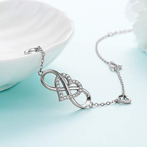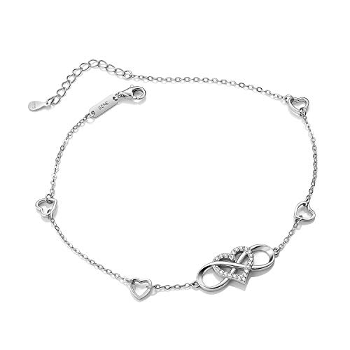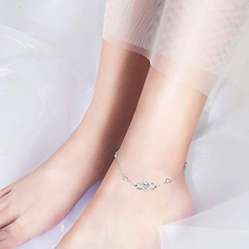 Cavigliera Argento 925 Vero Sterling Donna Infinito Segno Gioielli per Donne Ragazze Ragazza, Cuore Cubic Zirconia cavigliere Infinity Amore Braccialetto Regalo per Festa di Compleanno