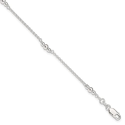 Cavigliera da donna in argento Sterling 925 con perline lucide, 22,9 cm