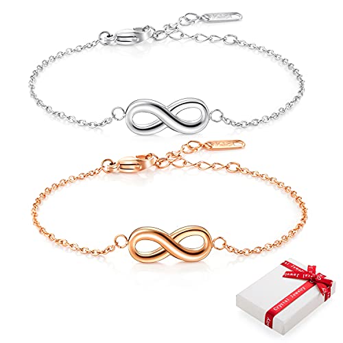 2 cavigliere con simbolo dell'infinito, da donna, in argento e oro rosa, per l'amicizia, in acciaio inox, per il compleanno, per donne e ragazze, in confezione regalo
