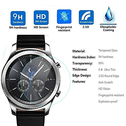 9 H Durezza — fatta dalla più alta qualità temperato-vetro, proteggendo il vostro schermo Samsung Gear S3 da graffi, gocce di crash e di forte impatto.