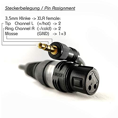 Cavo adattatore 30cm per microfono con mini jack da 3,5 mm su XLR femmina per fotocamere DSLR, DSLM 0,3m - SC-AK600-MF-0030