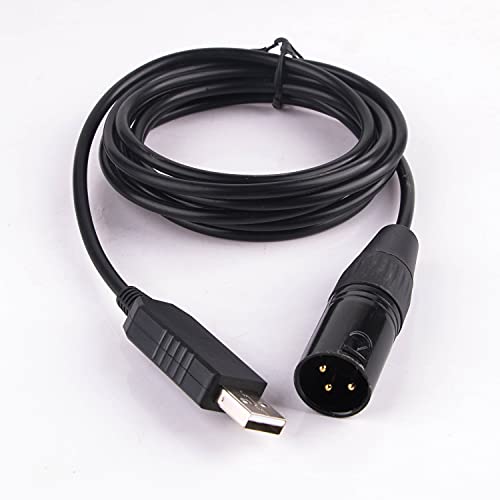Cavo adattatore USB a DMX 512 3PIN XLR interfaccia computer PC illuminazione palcoscenico Controller Dimmer USB su DMX Freestyle Software RS485 seriale (alloggiamento USB nero, 6 piedi/1,8 m)