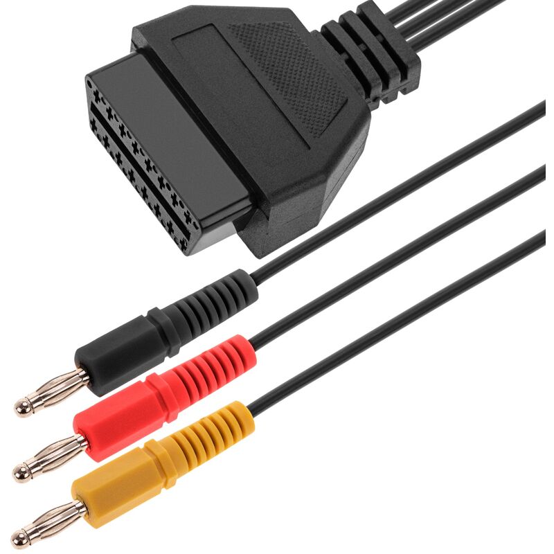 Il cavo di collegamento OBD2 (On Board Diagnostics) consente la diagnostica del veicolo. Possono essere utilizzati sia in auto che in moto, monitorando e controllando il motore e altri componenti al fine di effettuare una rapida diagnosi di possibili guasti che il veicolo potrebbe avere. Il collegamento di un'apparecchiatura diagnostica OBD2 alla connessione di ogni veicolo è unico. A seconda del modello e della marca, avrai bisogno di un connettore o di un altro. Ideale sia per le aziende di riparazione, come le officine meccaniche, sia per i privati che effettuano le proprie riparazioni. Caratteristiche del prodotto CONNETTORI: un'estremità dell'adattatore ha una presa OBD-OBDII a 16 pin che si collega all'apparecchiatura informatica che diagnosticherà il veicolo. Il cavo ha tre connettori a banana femmina compatibili con l'apparecchiatura diagnostica Bosch KTS. ALTA QUALITÀ: è un adattatore di alta qualità, con il cavo rivestito in plastica ABS, che ne garantisce la durata e la
