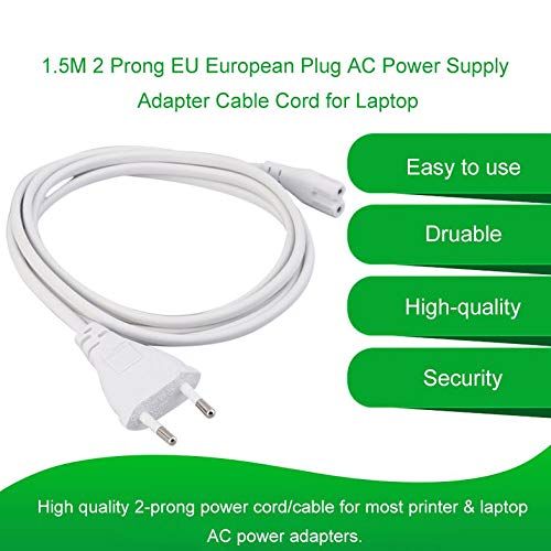 Cavo di alimentazione a 2 poli di alta qualità per la maggior parte degli adattatori di alimentazione CA per stampanti e computer portatili.