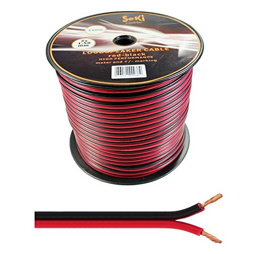 100 metri di cavo per altoparlante SeKi di colore rosso/nero, la sezione del cavo è di 2 x 1, 50 mm², facile identificazione della polarità tramite marcatura colorata o una ripetuta scritta su un conduttore.