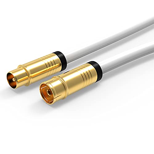 Cavo per antenna TV di alta qualità, da spina coassiale a presa TV (coassiale) (dritto), trasmissione di segnali analogici e digitali come DVB-T e DVB-T2, radio (FM/DAB / DAB+) e TV via cavo analogico/digitale SD/digitale HD | fornisce un collegamento affidabile tra la scatola di giunzione e il dispositivo di ricezione come televisore/ricevitore (ricevitore Sky) e radio