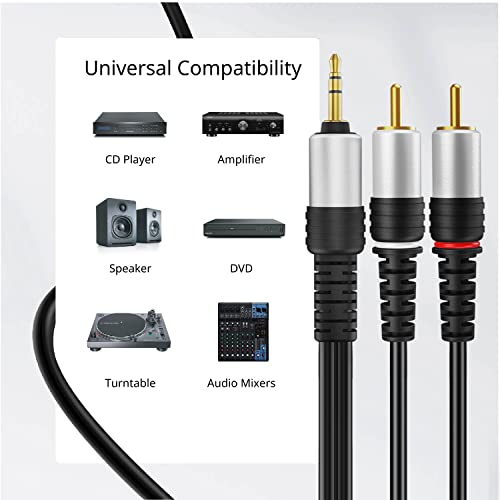 Cavo audio da 3,5 mm a RCA - Realizzato per configurazioni audio e connessioni al sistema audio che offrono un suono di alta qualità alle apparecchiature del dispositivo audio. Il connettore da 3,5 mm si collega al dispositivo e ai due connettori splitter RCA alla porta del sistema audio