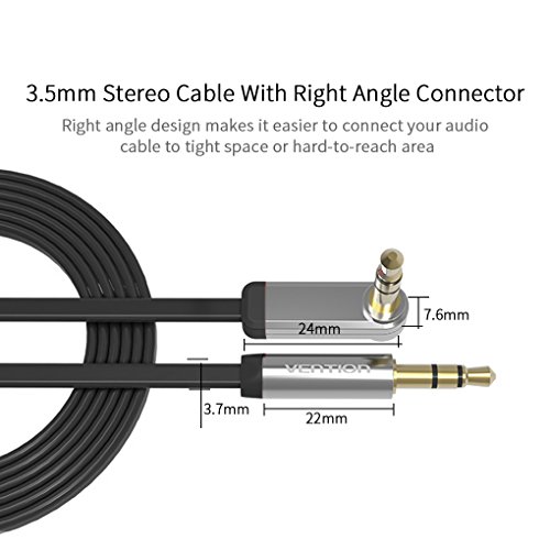 Cavo Audio Stereo Jack 3.5mm,Vention Cable Audio Cavo Aux Connettori Placcat 24 K placcato oro 3.5 mm da maschio a maschio prolunga cavo audio stereo, 90 gradi ad angolo retto cavo AUX per iPhone, iPad, smartphone, tablet o lettori multimediali