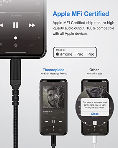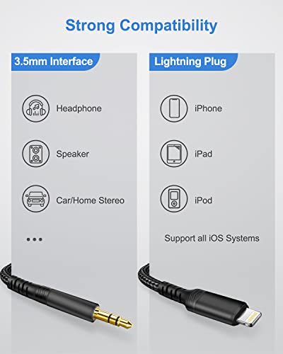 Cavo AUX per Auto per iPhone [Certificato Apple MFi] Cavo Audio Cavo Aux da Lightning a 3,5 mm Audio Premium per Autoradio Altoparlanti Cuffie Compatibile con iPhone 12/11/XR /8P /7 / 7P -1M Nero